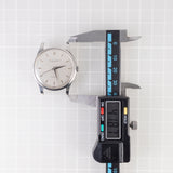 ケースは使用傷が見られますが、ラグはエッジがしっかりと残されており、シャープな印象を保っています。風防とダイヤルは長い年月を経てヴィンテージならではの柔らかさを帯び、自然なエイジングが上品な雰囲気を演出しています。インデックスは経年劣化が見られるものの、ヴィンテージらしい趣のあるアクセントとして機能しています。針は経年変化が認められますが、鏡面のファセットは美しく残されており、その輝きは十分に保たれています。弊社にて分解掃除済みです。