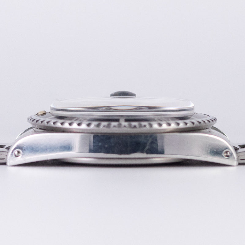 ロレックス由来の堅牢な設計を基盤としながら、独自のディテールを随所に備えたチューダー・サブマリーナ。Ref.76100は1980年代前半のわずかな期間に製造されたモデルで、短命であったがゆえの希少性があります。ブラックマットダイヤルやベンツ針のバランス、そしてヴィンテージブレスレットとの組み合わせが魅力的な一本で、日常使いにもふさわしい実用性を備えています。コレクションと実用の狭間を楽しめる、チューダーならではの魅力を体現したモデルといえるでしょう。