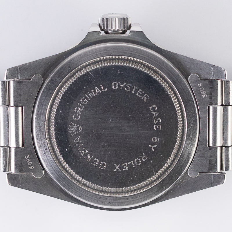 This Tudor Submariner offers a refined and balanced design with its matte black dial, luminous hour markers, and signature “lollipop” seconds hand. Understated yet robust, the watch maintains key elements shared with Rolex models of the era, while also asserting its own distinct identity. The case features crown guards for added protection, and the caseback bears original Rolex engravings—a hallmark detail of the period. It is fitted with a folded-link 9315 bracelet and 380B end links, both correct for the reference.