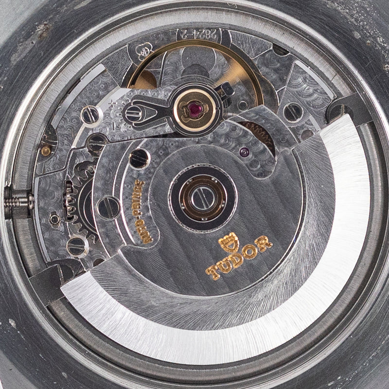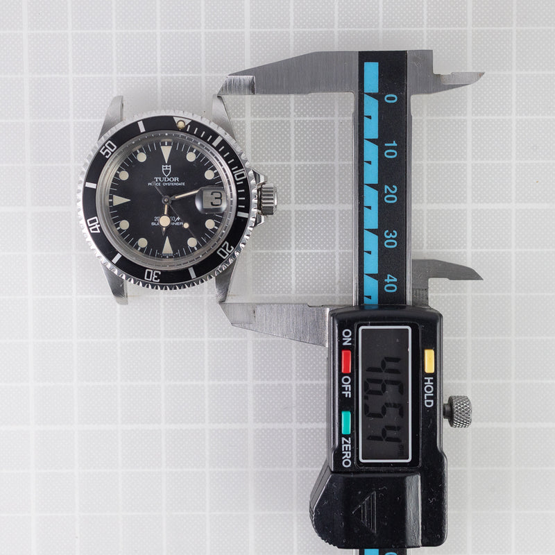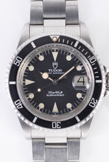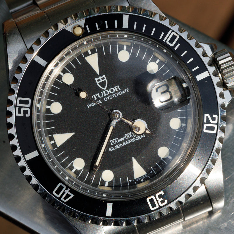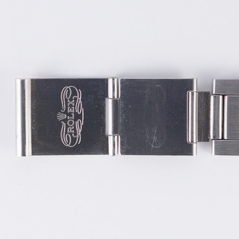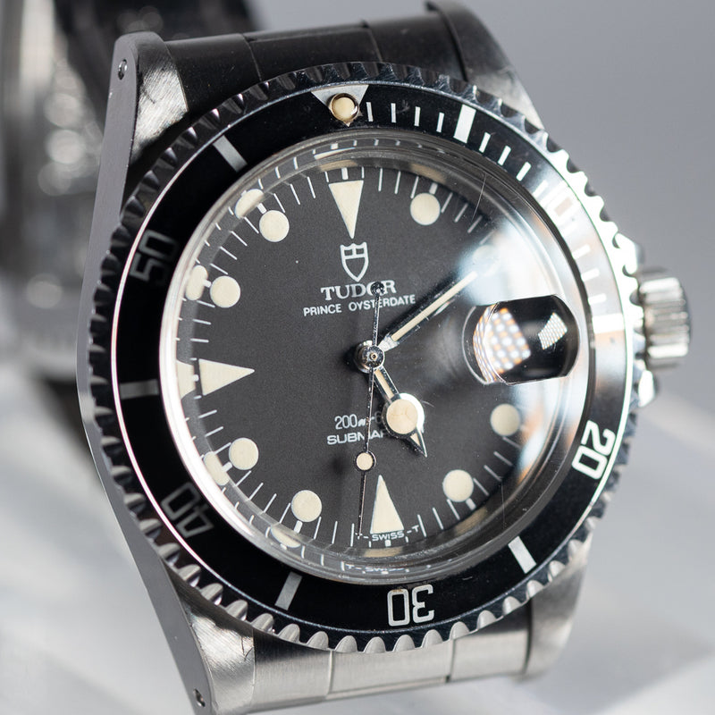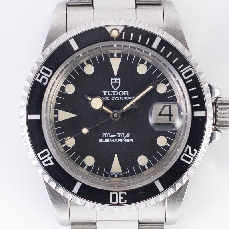 ブラックマットのダイヤルに夜光塗料のインデックスとタコ針を組み合わせた、チューダーのサブマリーナらしい端正な構成です。控えめながらも堅実なデザインで、ロレックスとの共有構造を保ちながらも独自の個性を持ったモデルです。ケースにはリューズガードを備え、裏蓋はロレックス製の刻印が見られるなど、この年代ならではのディテールが残されています。ブレスレットはフォールデッドタイプの9315で、380Bのエンドリンクが装着されています。