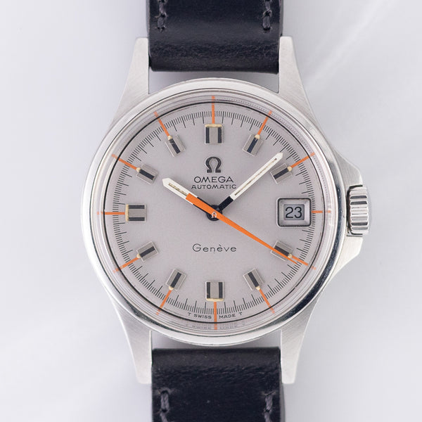<Geneve(ジュネーブ)>シリーズは、コンステレーション、デビル、スピードマスター、シーマスターなどのシリーズの中でエントリーモデルとして1964年に登場。エントリーモデルとはいえ、発売当時の国産機械式時計などと比べるとはるかに高性能で、高価な時計でした。デザイン性が高く、メンズ、レディス共に都会的でスタイリッシュなモデルが多いラインです。現在では生産されていないモデルのため、アンティークでしか味わえない魅力があります。